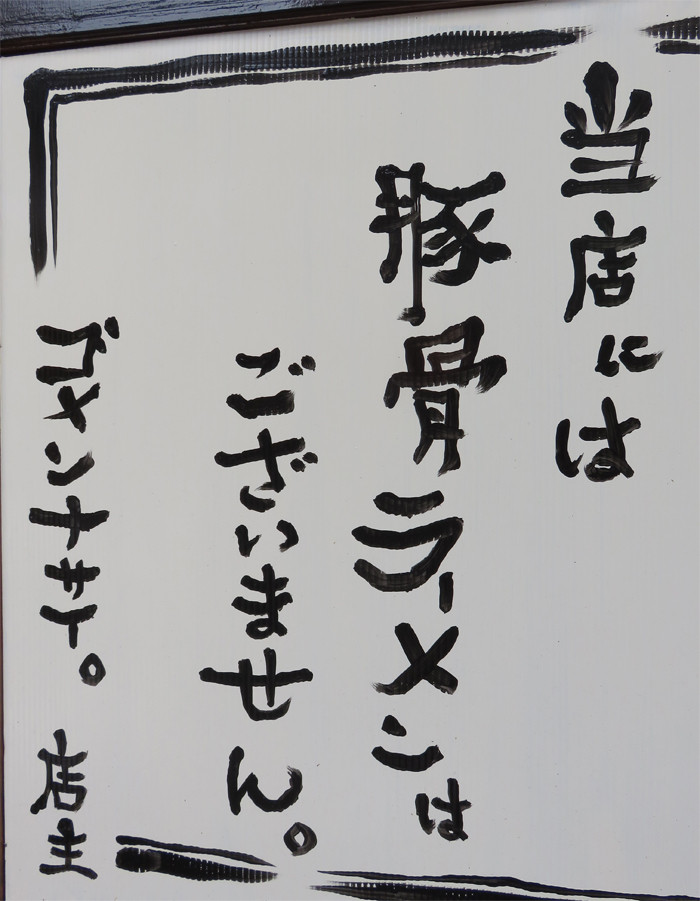 『当店は豚骨ラーメン店ではございません。』の貼り紙。