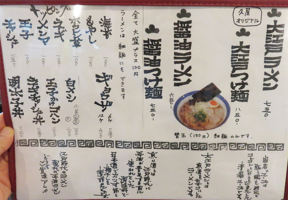 ラーメンとつけ麺の2種類がありますが、味は大江戸と醤油。