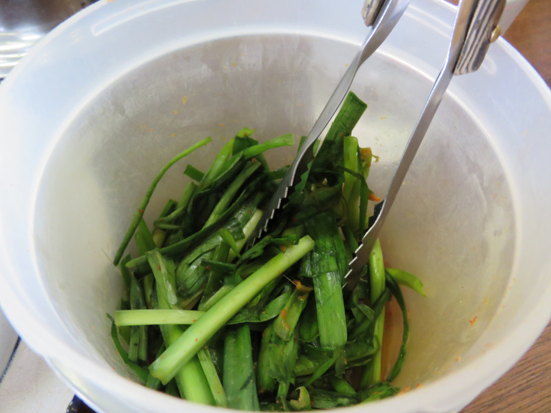 そして、卓上に辛子高菜はありませんが、ニラがあります。