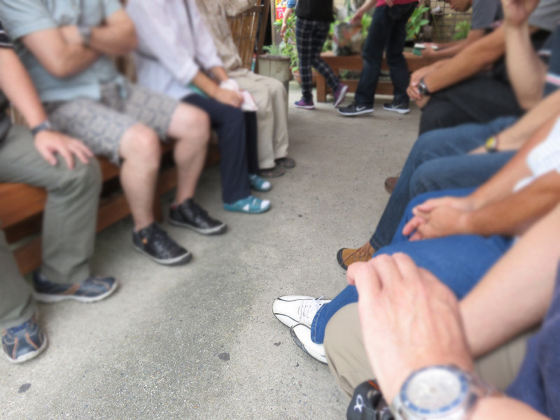 店舗前の腰掛待合でメニューを眺めながら20分待ち、