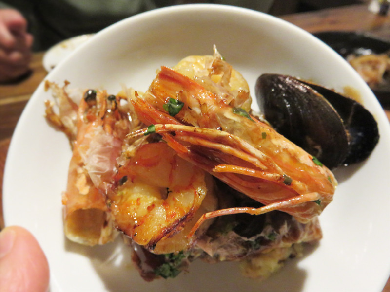海老・イカ・あさり・ムール貝など沢山のシーフードがトッピングされていて、