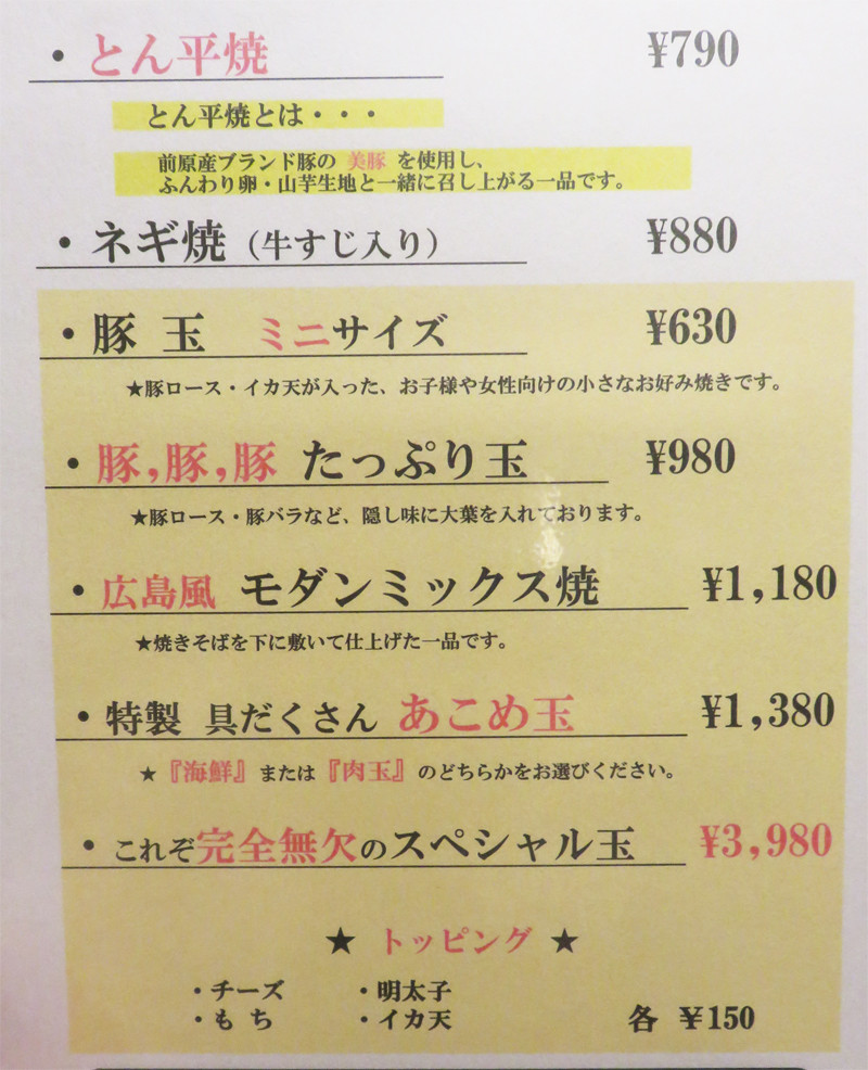 福岡市西区姪浜にあるとん平焼きと鉄板お好み焼き専門店です。