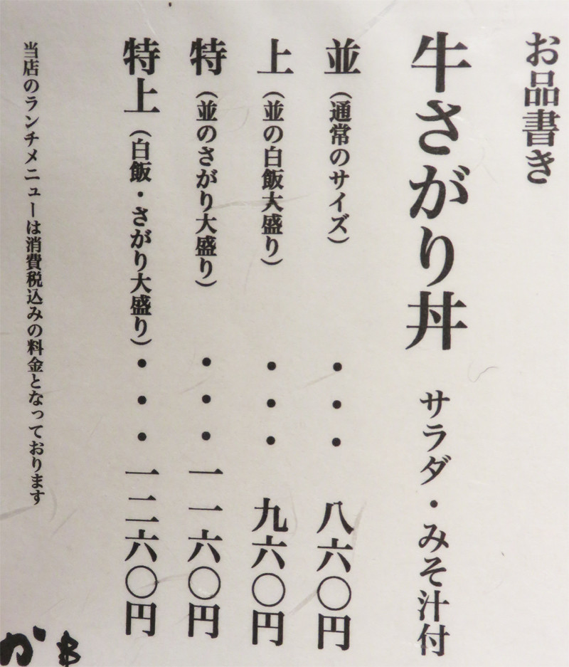 お肉の質は同じですが、肉やご飯の量に応じて、並・上・特・特上とあります。