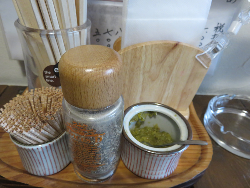 鯛骨麺は、麺入りのお吸い物って感じ位優しい味なので、卓上のブラックペッパーや柚子胡椒を添えて頂くのも美味しいです。