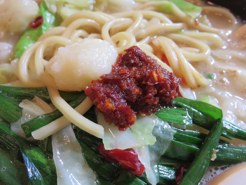 最初は、モツ鍋風チャンポンなのかなと思いましたが、白濁濃厚スープのチャンポンでした。