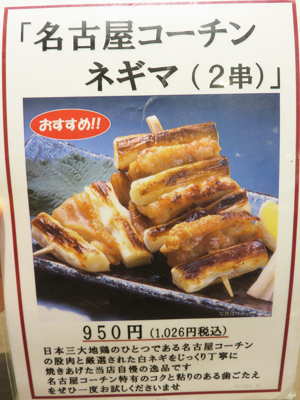 名古屋コーチンのねぎま串、2本で1,026円(税込)。