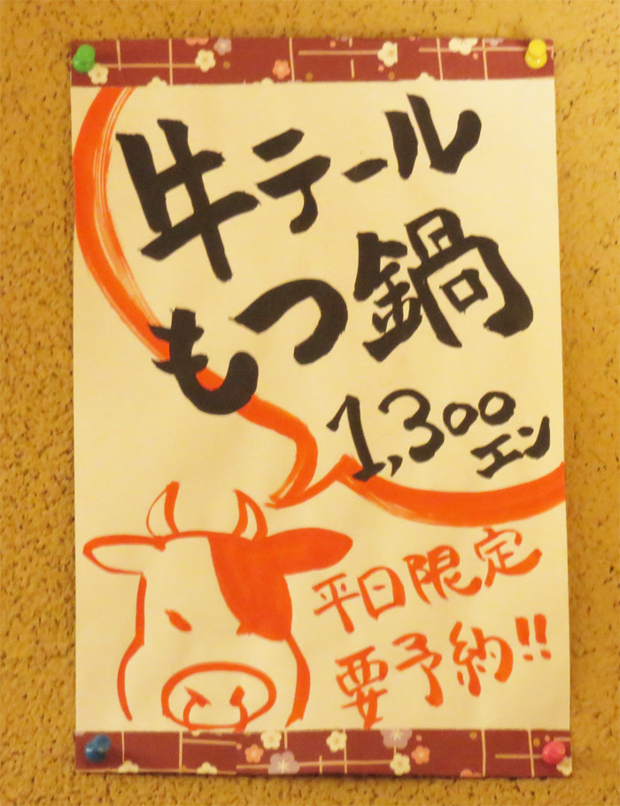 平日は、牛テールもつ鍋もあるそうです。