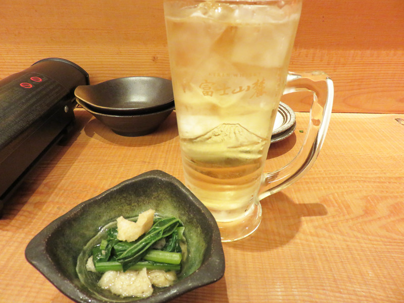 お通しは、南関揚げと小松菜の煮浸しでした。