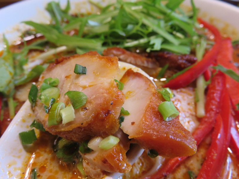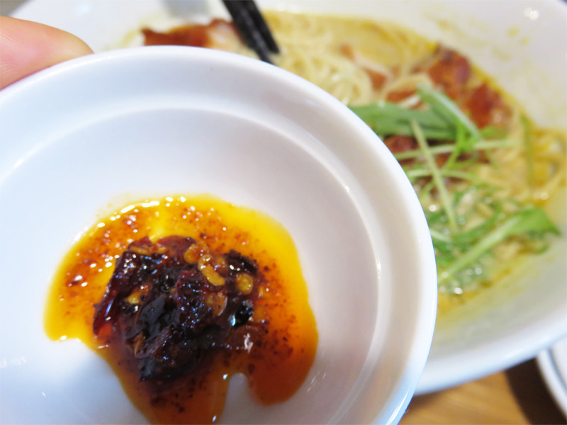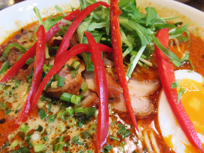 チリオイルが多めなので、ベースのエスニックラーメンよりはややグリーシーです。
