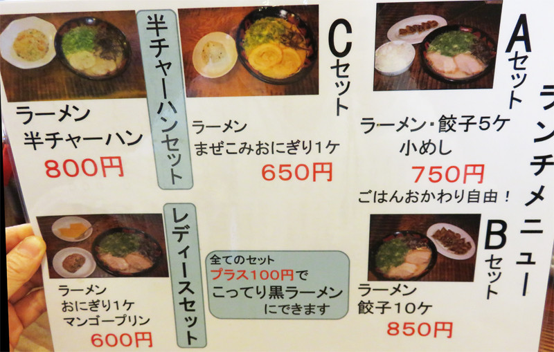 お隣のOLさん2人は、豚骨ラーメンにおにぎりとデザートが付くレディースセット600円を注文してました。