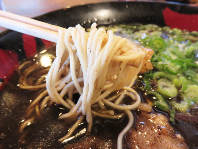 麺は豚骨ラーメン用の細麺ではなく、中細麺。