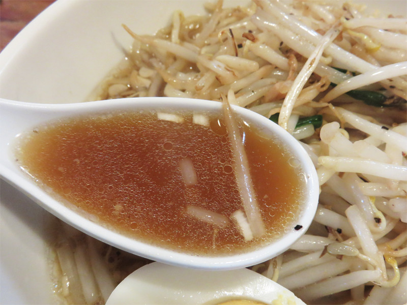 私が注文した、非豚骨のもやし醤油ラーメン850円。