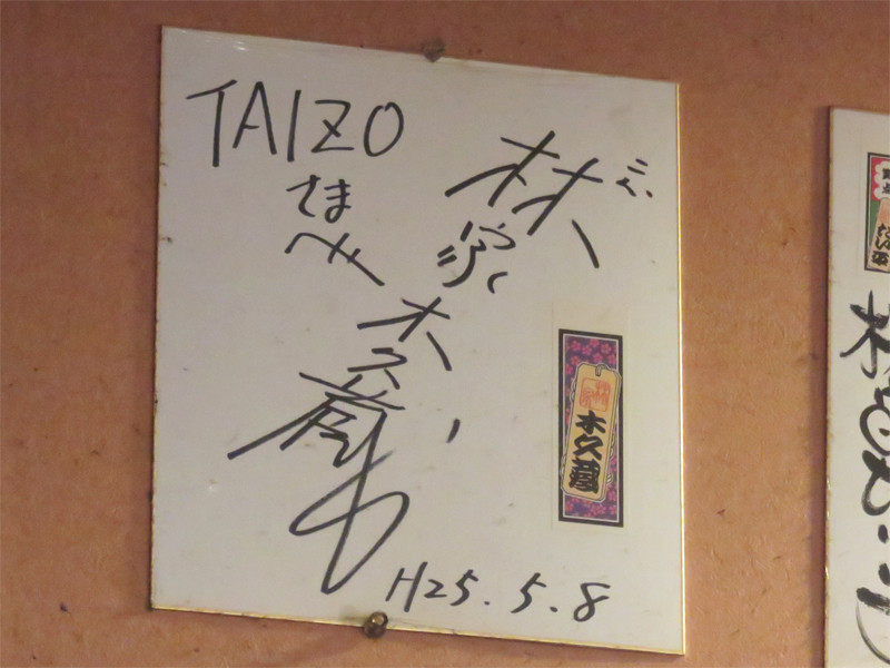 お店の壁には、醤油味の木久蔵ラーメンの生みの親である林家木久蔵(現:林家木久扇)師匠のサインが貼ってありました。