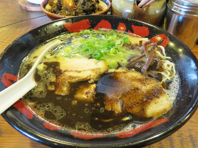 特製黒マー油入りのこってり黒ラーメンがウリの人気豚骨ラーメン屋さんです。