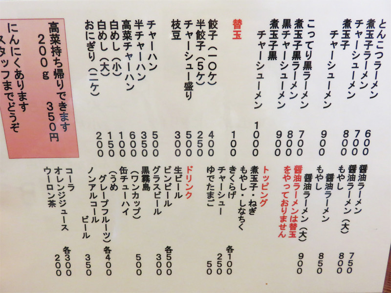 黒マー油入りラーメンではなくても、バランスの良い豚骨ラーメンが頂けるお店として人気を保っています。