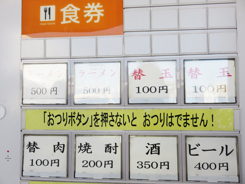 ラーメンは500円。替玉は100円。トッピングの替え肉も100円です。