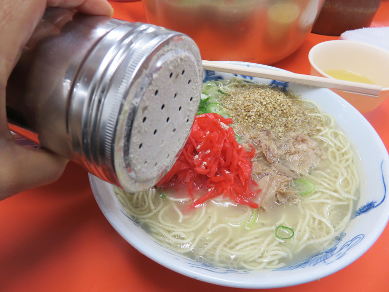 味が薄まった時は、卓上のタレをかけて下さい。