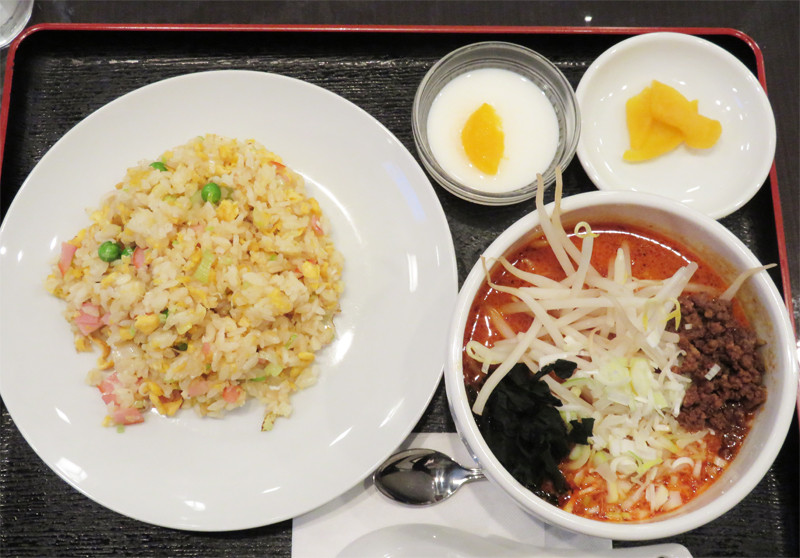 ハーフ担々麺とハーフチャーハン+αの組み合わせです。
