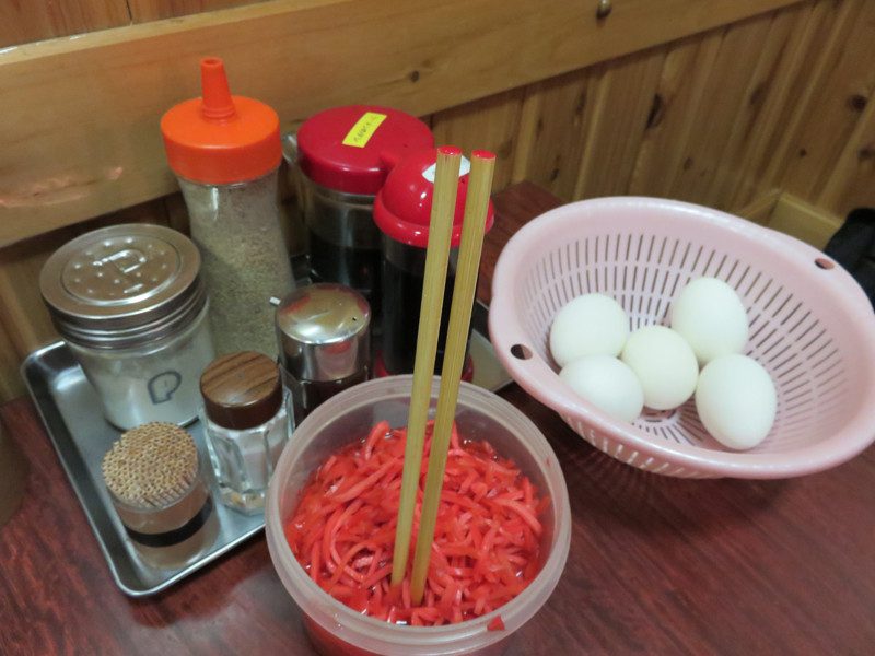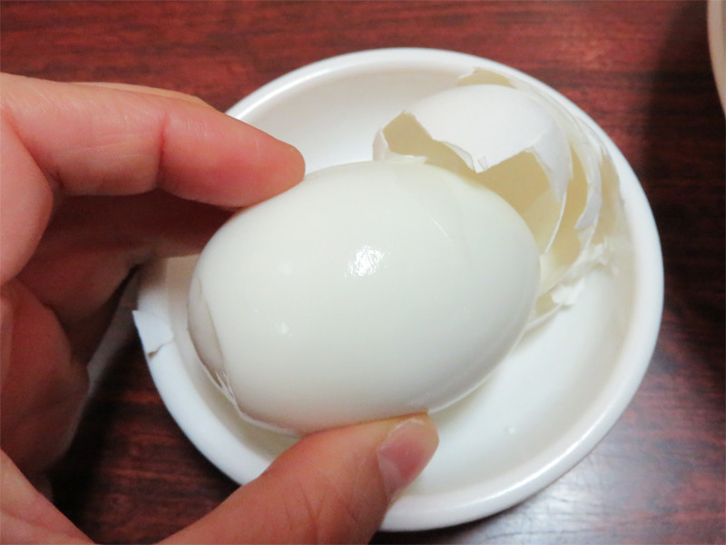 ラーメンの前にゆで玉子を食べるのが好きですが、殻をむいた頃に丁度着麺。