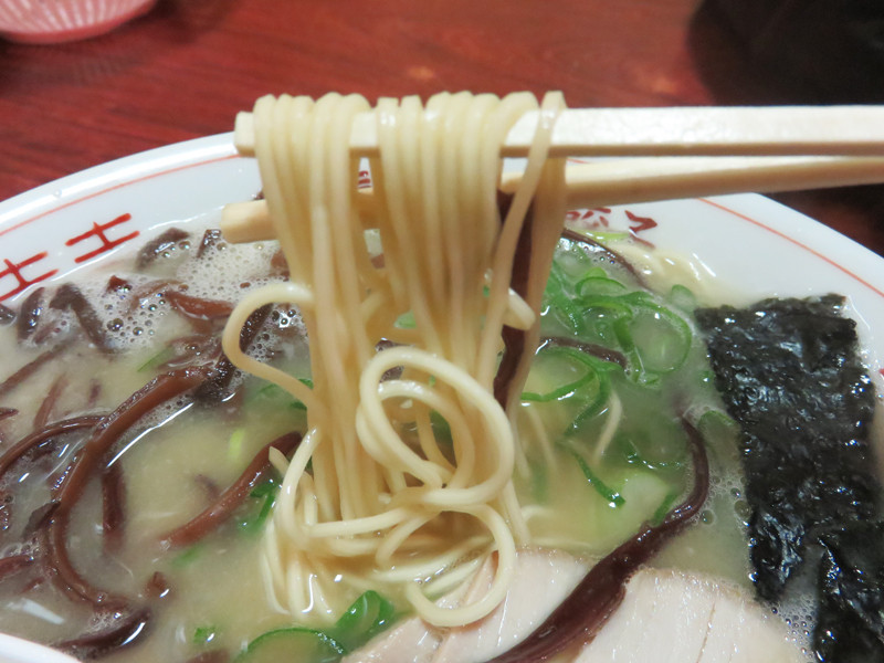 長浜ラーメンのお店ですが、長浜系にありがちな低下水率の麺のように粉っぽくなく、