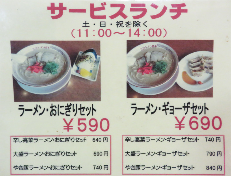 辛子高菜はありませんが、メニューに辛子高菜ラーメンがあります。