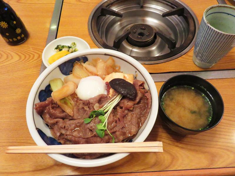 その後、10分後だったか15分後だったか、すき焼丼と味噌汁が出てきました。