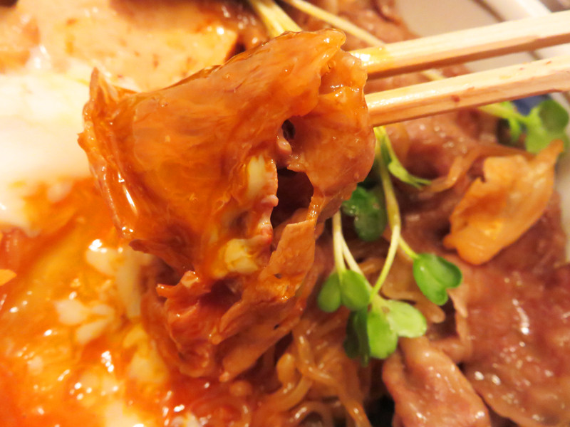 生卵ならぬ黄身がトロける半熟卵に、肉を絡めて頂くと超快楽的!