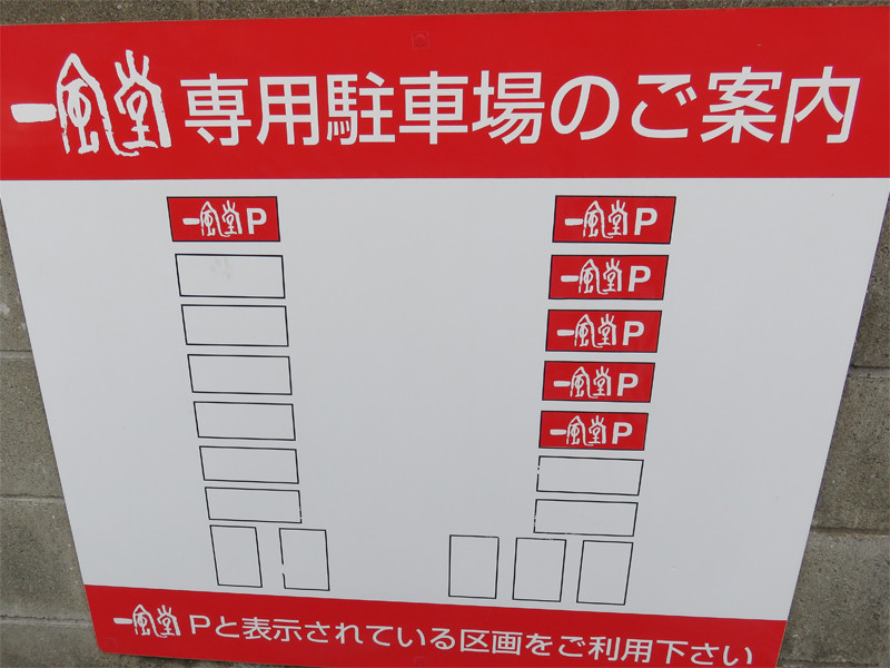 無料の一風堂専用スペースもありますが、満車の場合は40分100円のコインパーキング利用となります。