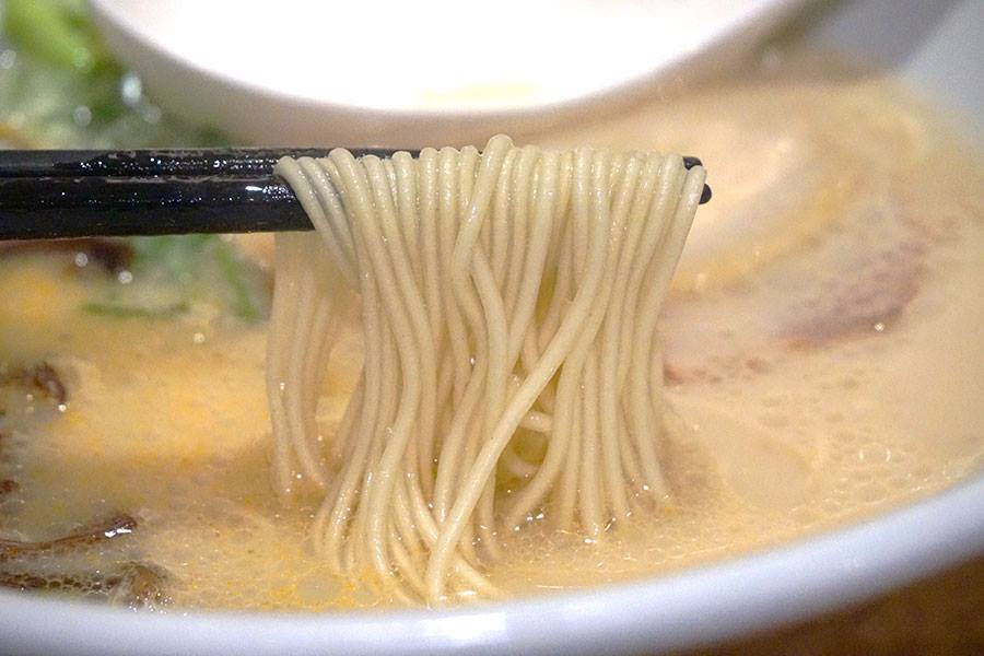 通常の博多ラーメンの細麺と違って、コクのあるスープに合わせたコシのある麺でした。