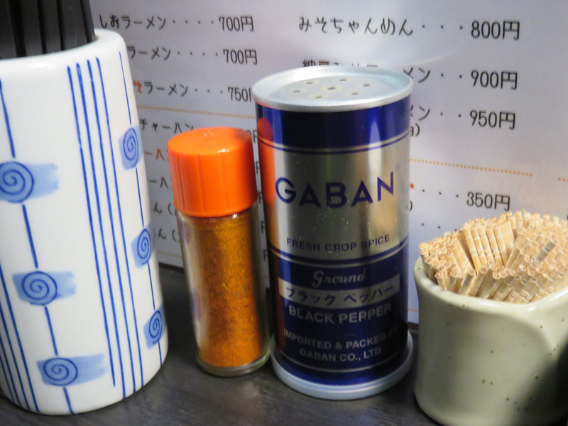 卓上には、一味とブラックペッパー。