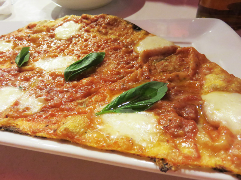 最近、ボリューミーなナポリピッツァがブームですが、こちらの生地は極薄のカリカリです。
