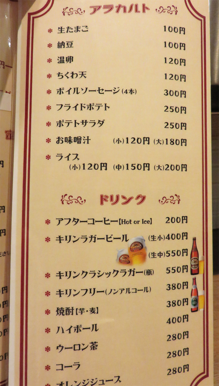 こちらは、アラカルトとドリンク(お酒を含む)のメニューです。