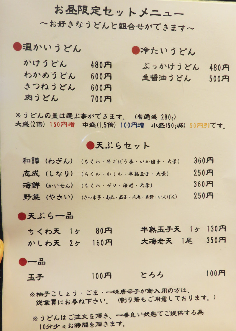 ぶっかけうどんは単品で480円。