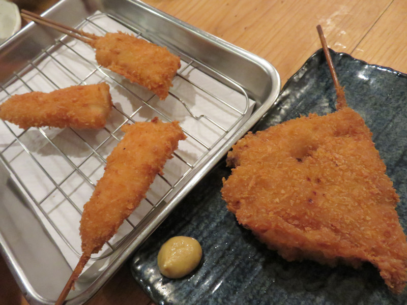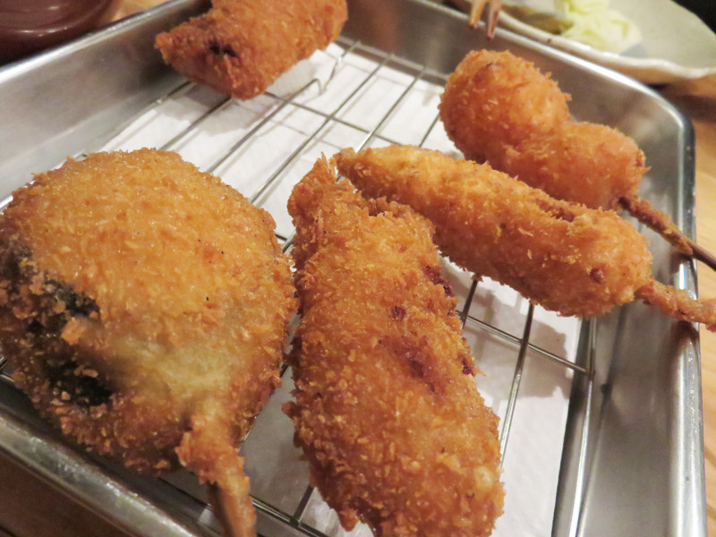 中身がチラリズムの高級串揚げと違い、串かつは衣で完全着ぐるみ状態なので、中身が見えません。