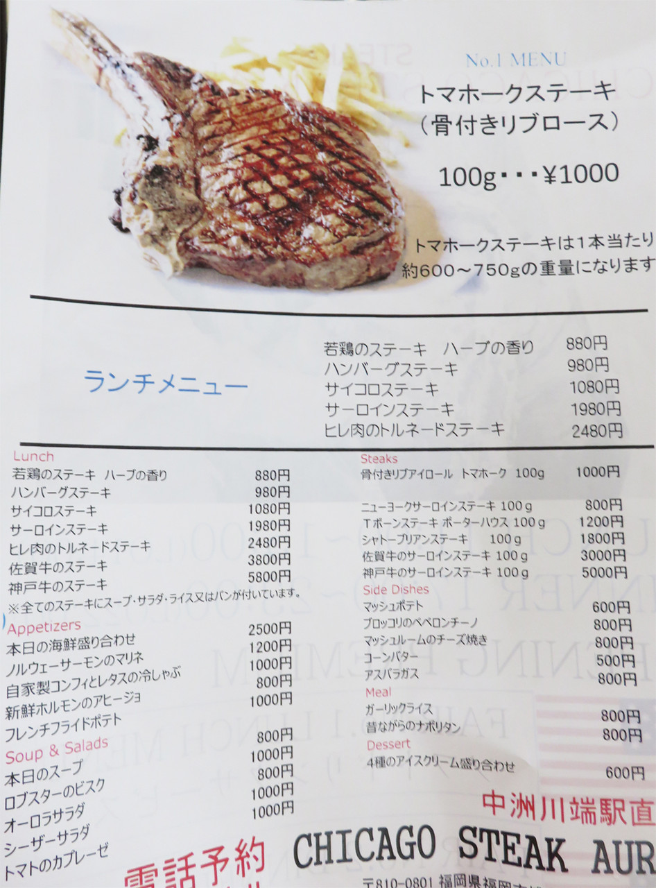 【福岡】中洲で熟成牛!トマホークステーキばい♪@シカゴステーキ オーロラ