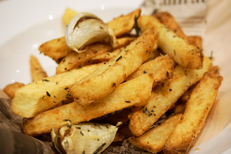 全体的にローズマリーの風味で、ガーリックの素揚げも添えられており、