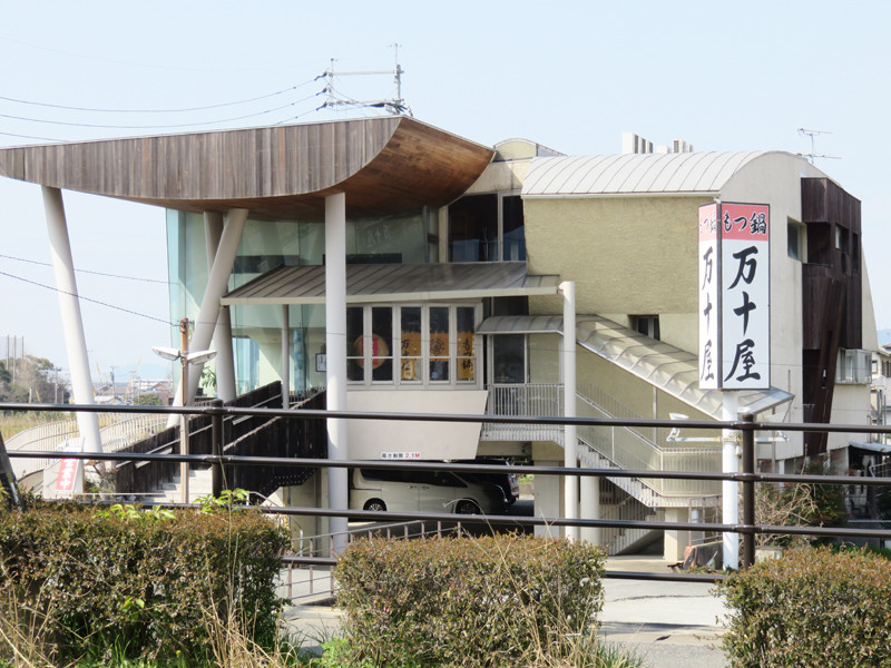 近くには、すきやき風のモツ鍋を出す万十屋がありました。