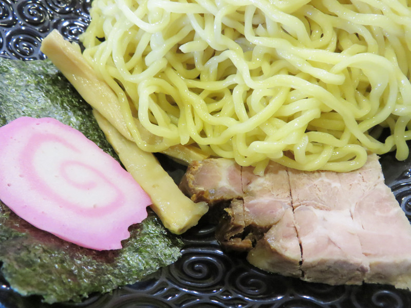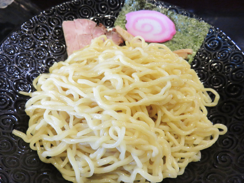 中華そばの麺をそのままつけ麺スタイルにしているので、麺が細いかと思いきや、