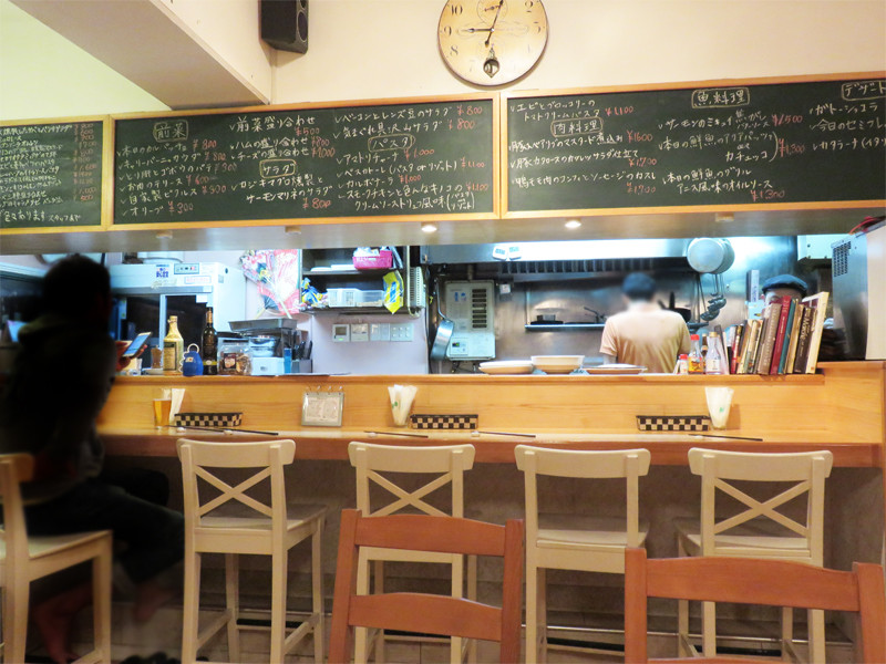 常連のお一人様がポツリポツリと訪れるカウンター席。