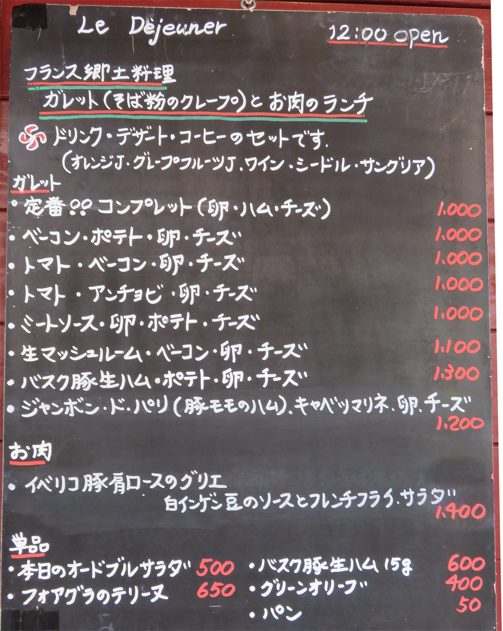 ランチメニューは、ガレットのセット数種とイベリコ豚のグリエがあります。