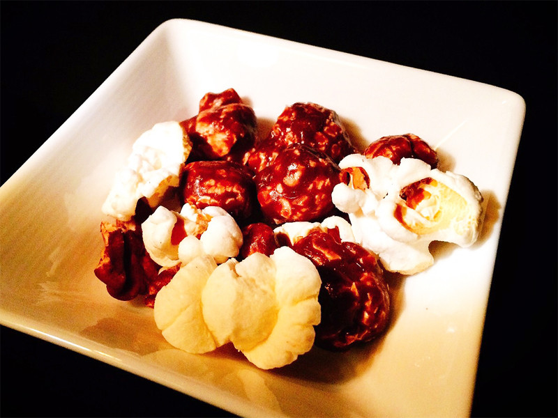 無料の渇き物のおつまみは、映画館らしくポップコーンでした。