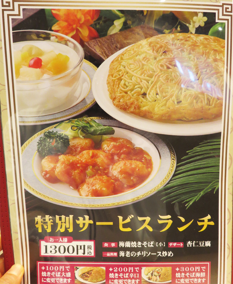 というワケで、辛党の私は、梅蘭焼きそば辛口1,300円を注文しました。