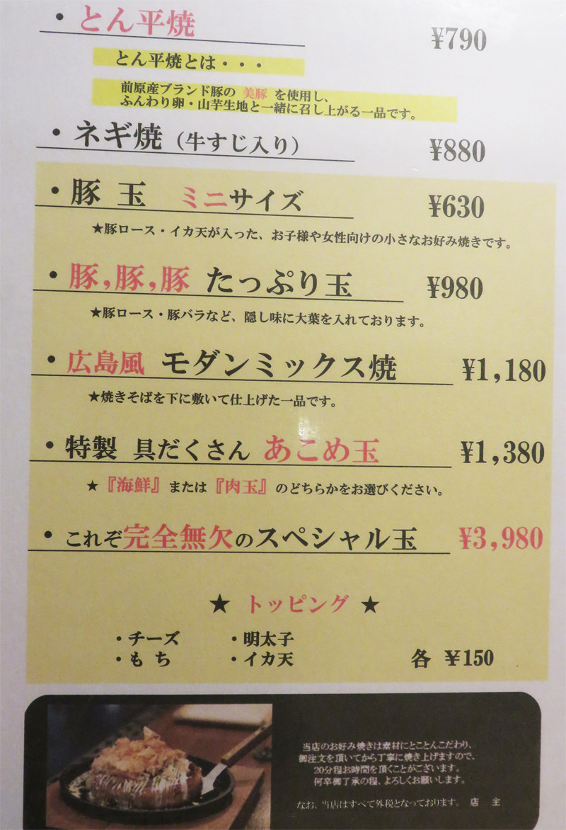 ※姉妹店に、とん平焼きとお好み焼き『あこめの浜』があります。
