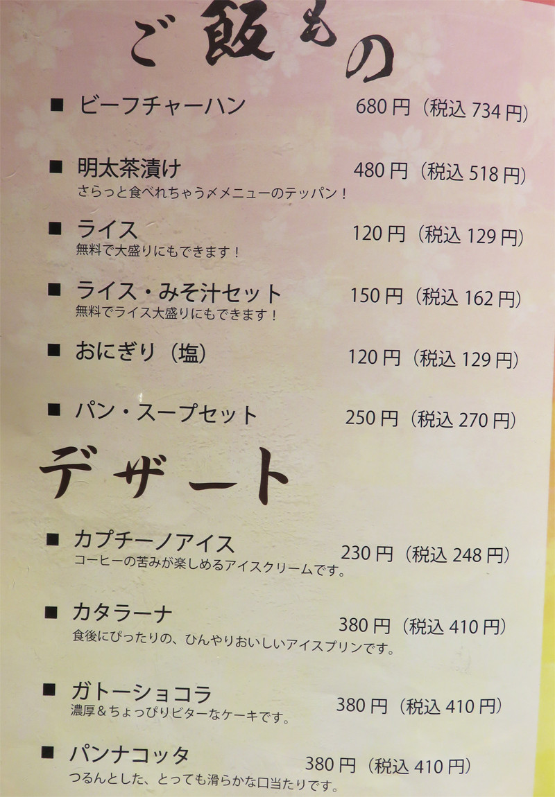 以下、メニューです。