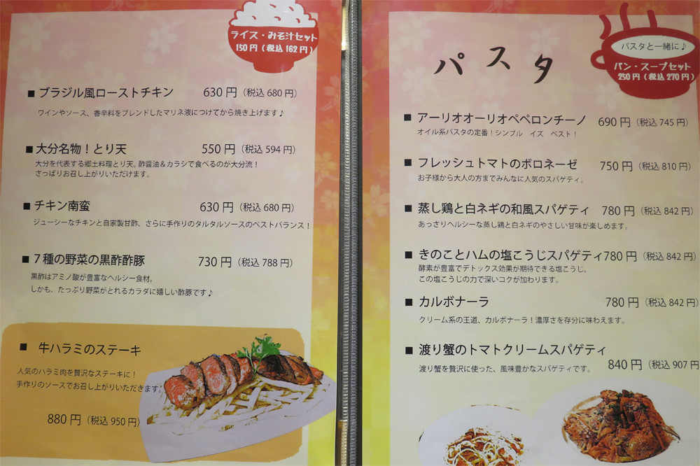 ランチは、これにご飯と味噌汁が付いたメニューがありますし、