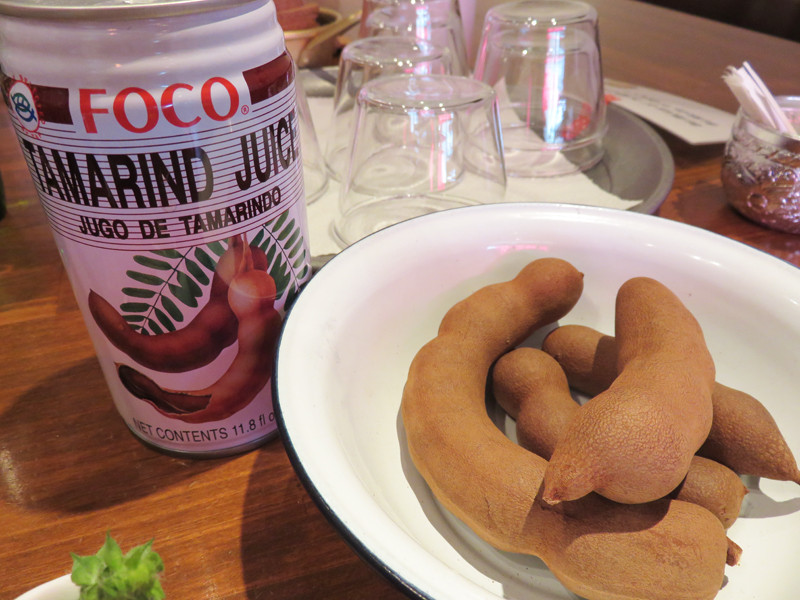 卓上には、生のタマリンドとタマリンドの缶ジュース。
