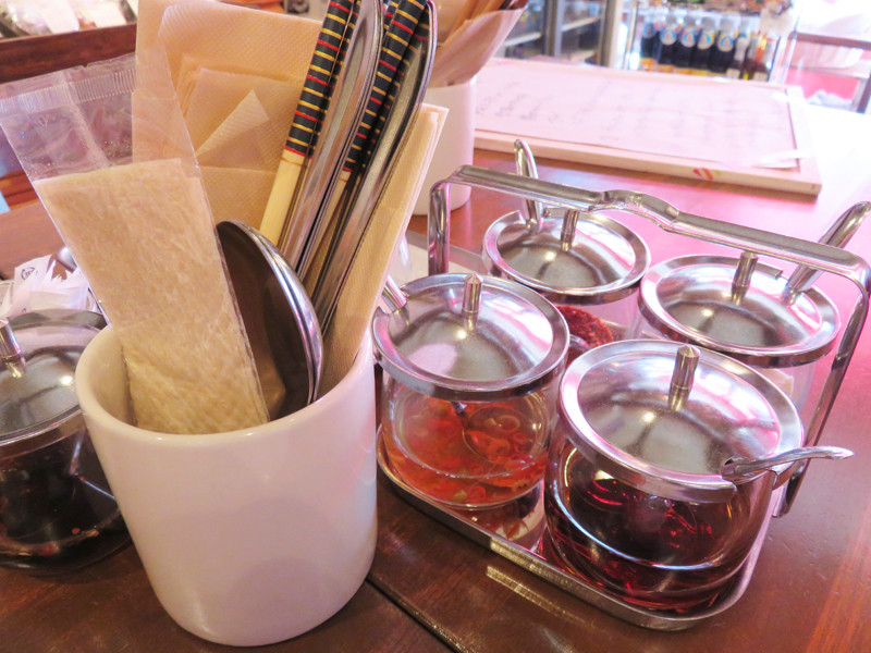 もっと辛いのが好きな方は、卓上の調味料セットで追い辛しましょう。
