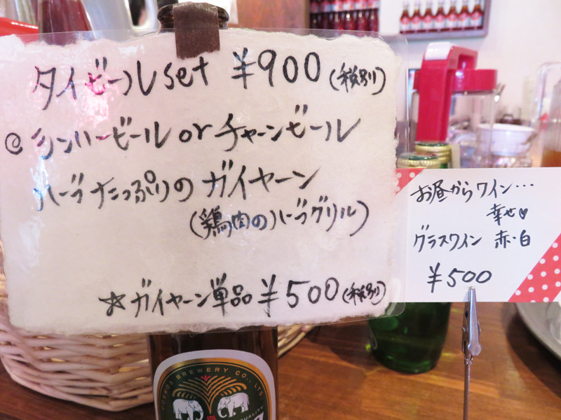 ランチメニューの他には、タイビールとガイヤーンのちょい飲みセットもあります。