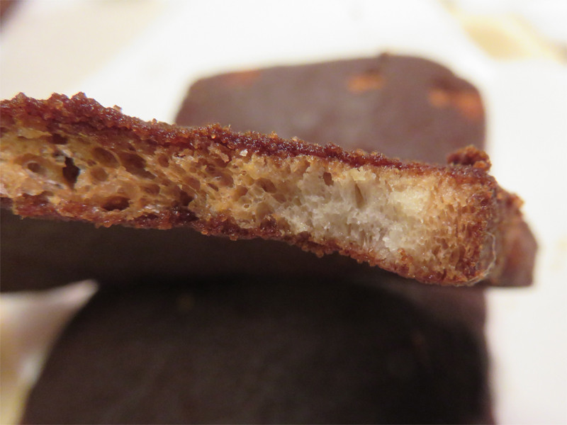 8枚切り位の耳を落とした食パンをラスクのように乾燥焼きさせたものが2枚入ってます。