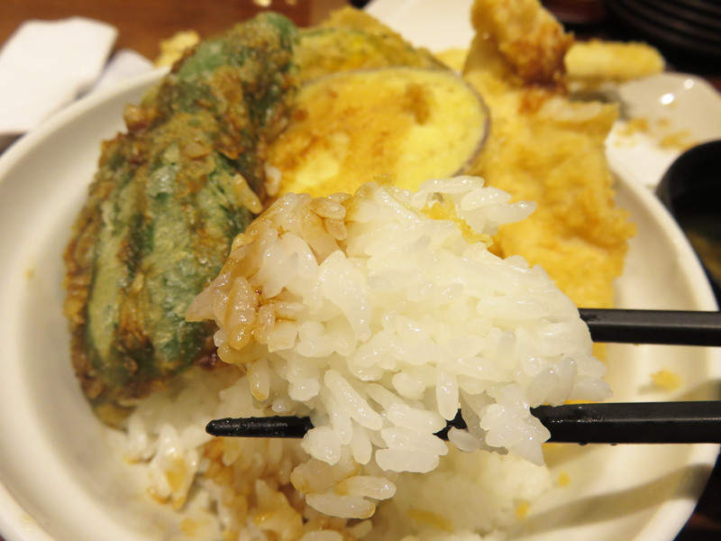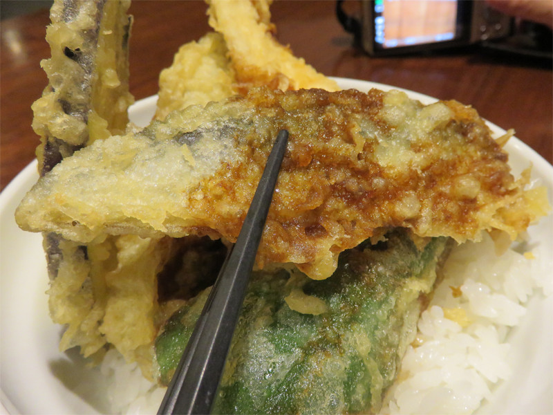 天丼はつゆがかけられているのですが、つゆの量は控えめです。
